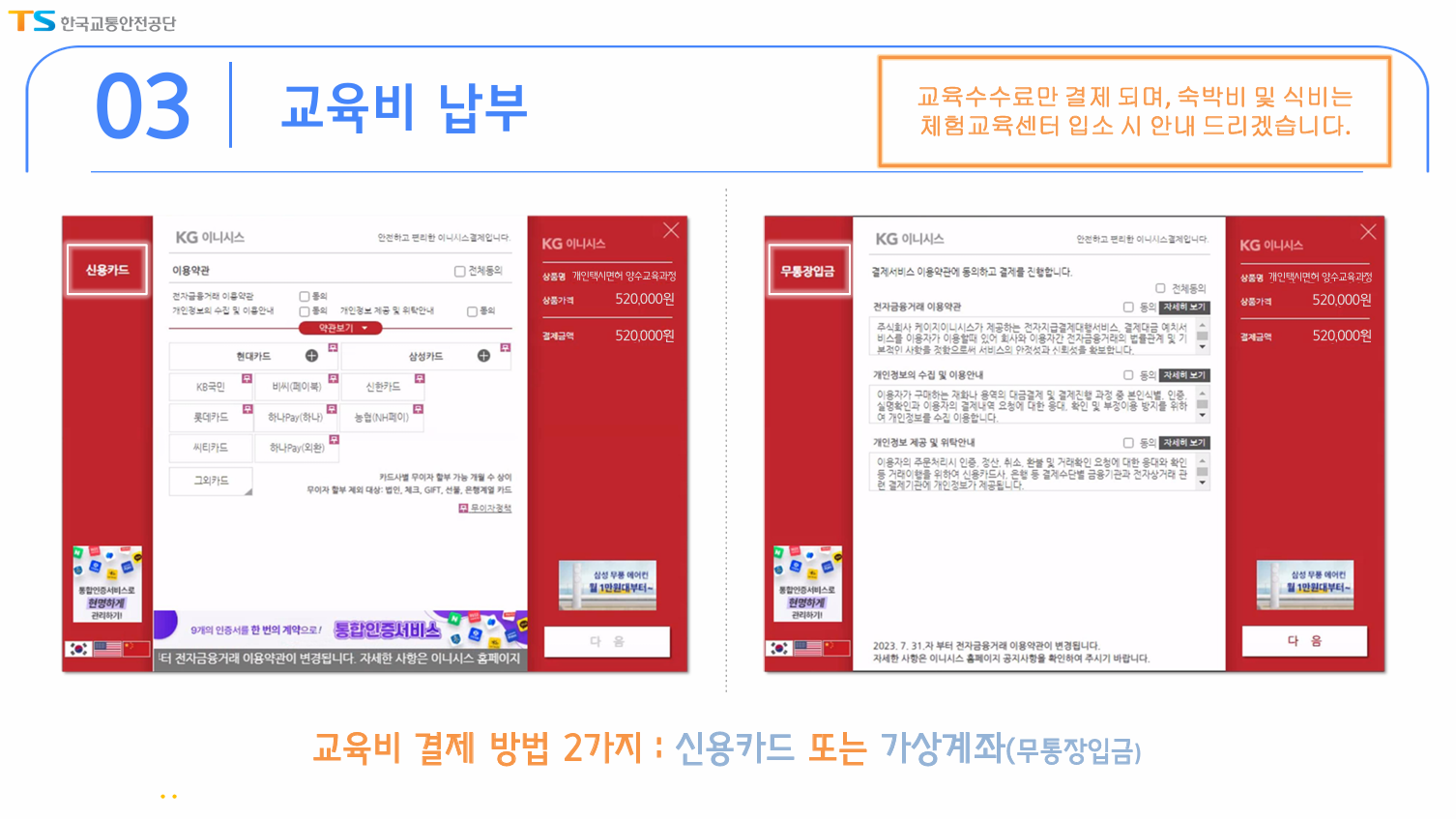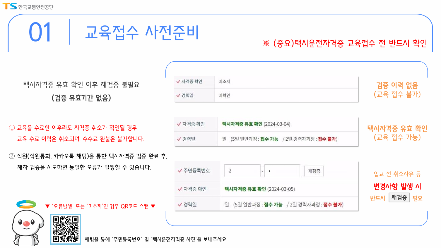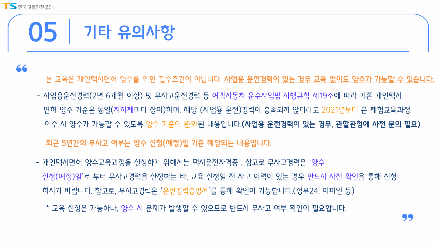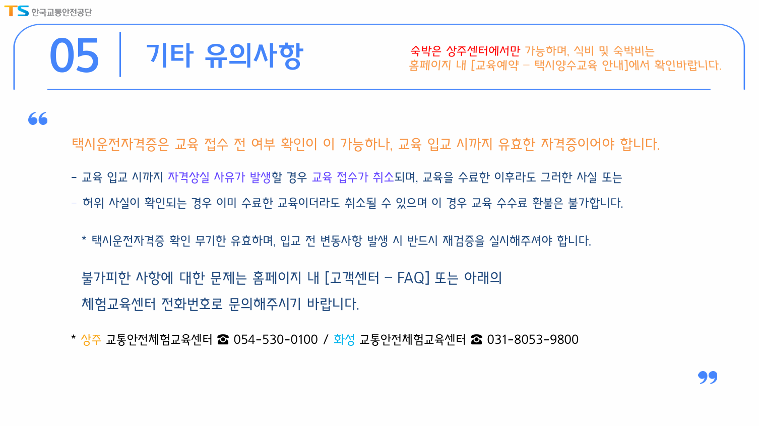 아울러 양수교육 신청 기간에는 교통안전체험교육센터 전화 문의가 폭주하여 카카오톡으로 문의 주시면 순차적으로 답변해 드린다고 합니다. 신청 오류와 같은 문의는 한국교통안전공단 교통안전체험교육센터 카카오톡으로 문의하시면 되겠습니다.