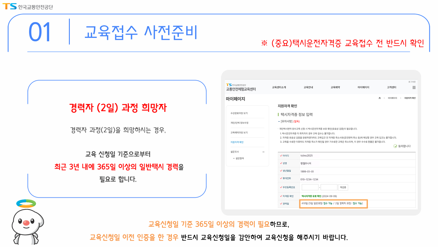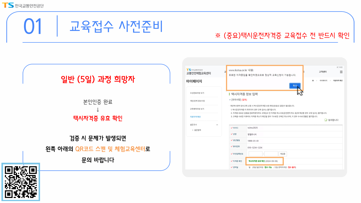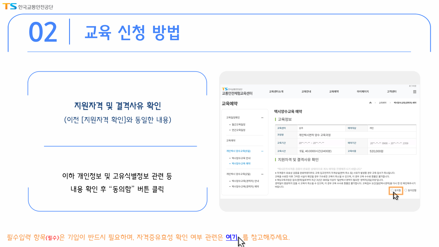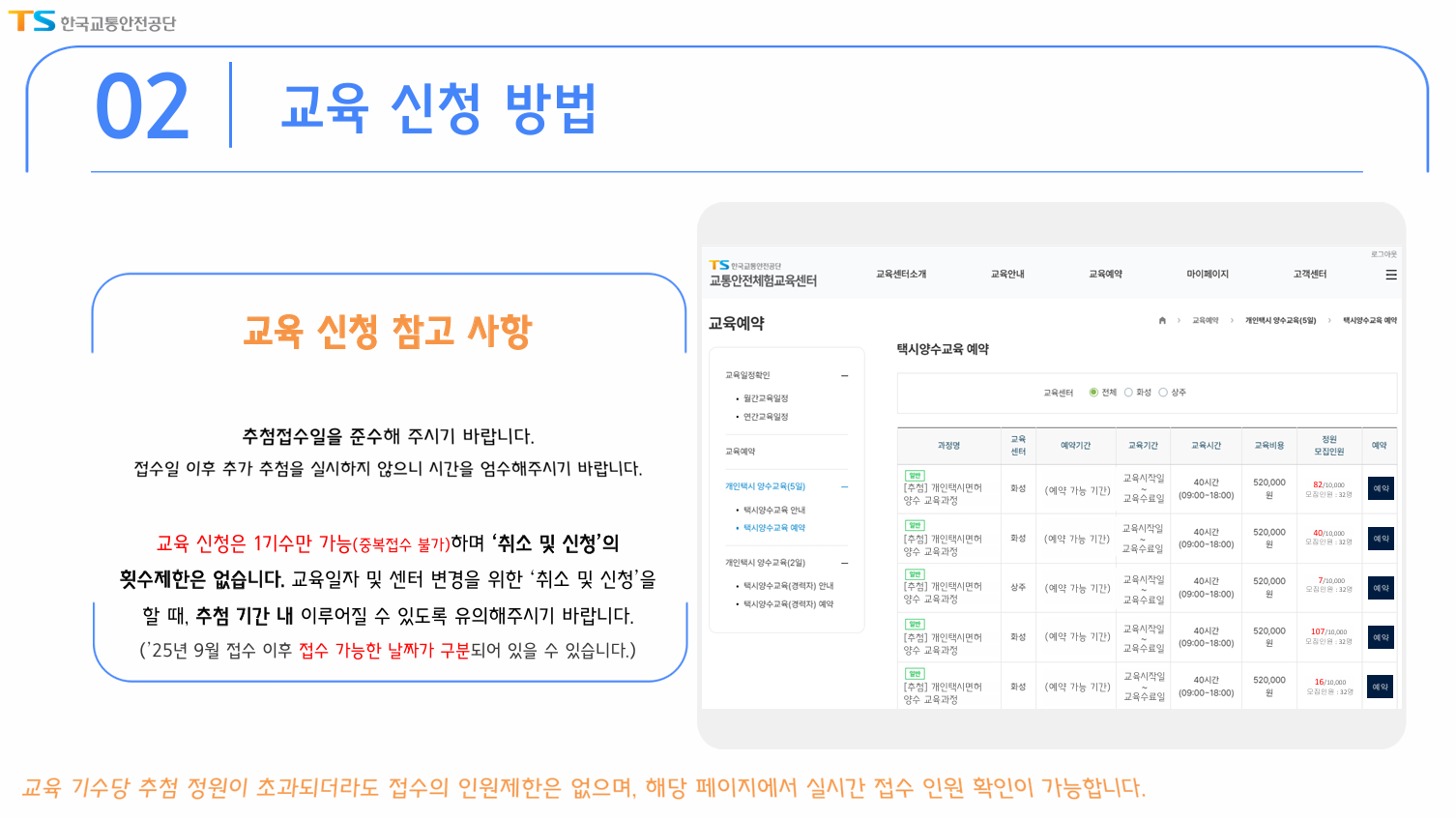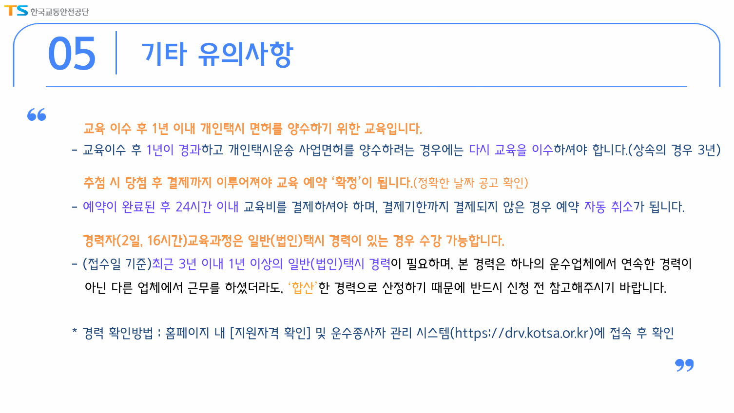 ▷ [추첨가점제 적용] 개인택시 양수교육 개인별 접수 일정 알림 신청