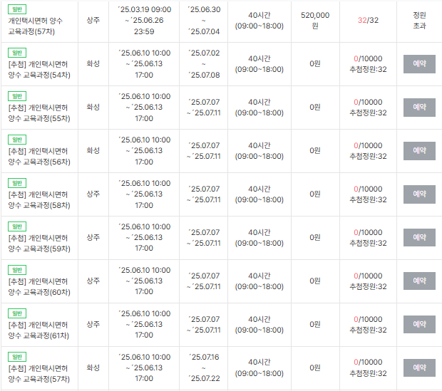 개인택시 양수교육 예약에 성공했더라도, 교육 수수료를 결제하지 않거나 예약을 취소하는 경우가 발생할 수 있습니다. 이때, 대기번호를 받은 사람에게 순번이 돌아가게 됩니다.