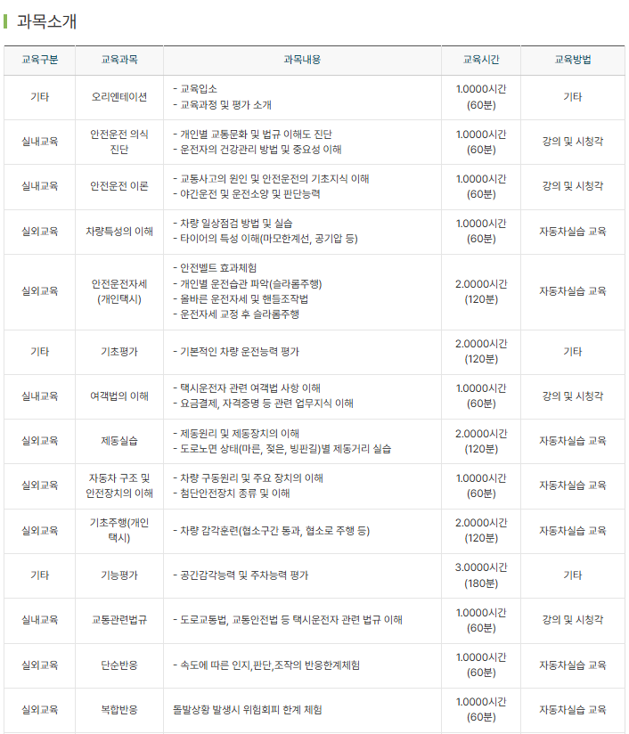 ○개인택시 양수교육 과목은 무엇이 있나요?